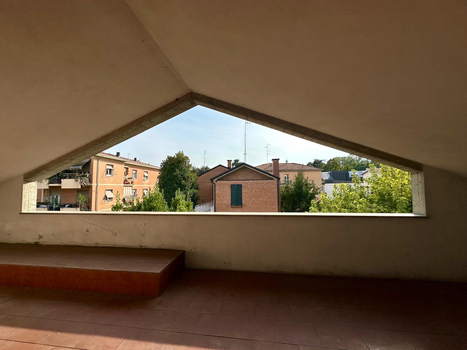 Il piano superiore ospita un open space mansardato con bagno privato e accesso a una grande terrazza, ideale come area relax, o ulteriore zona notte.