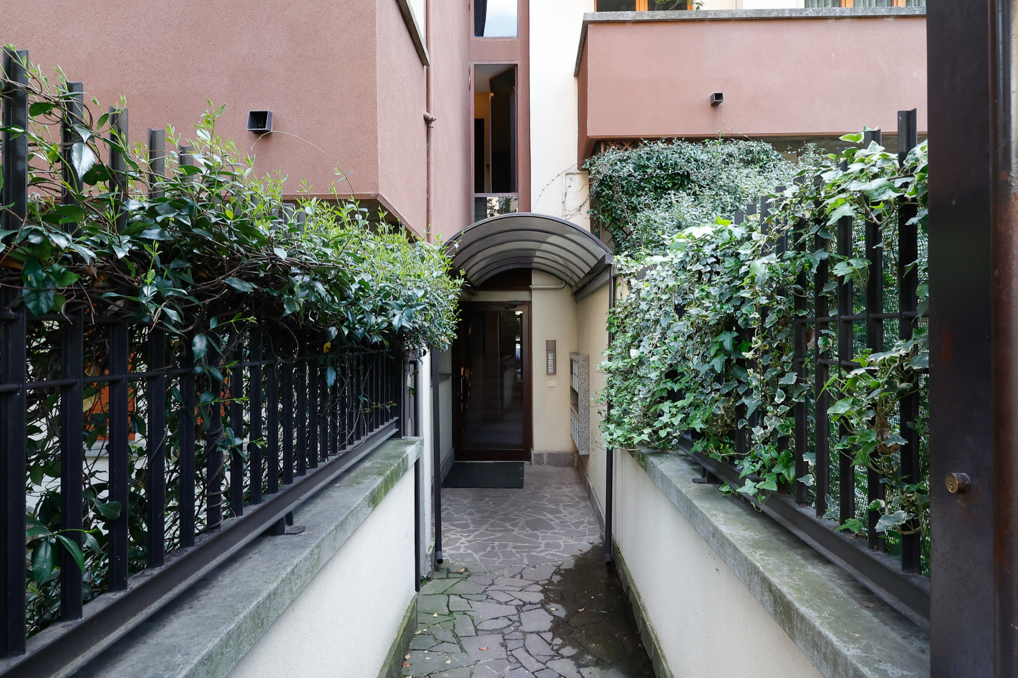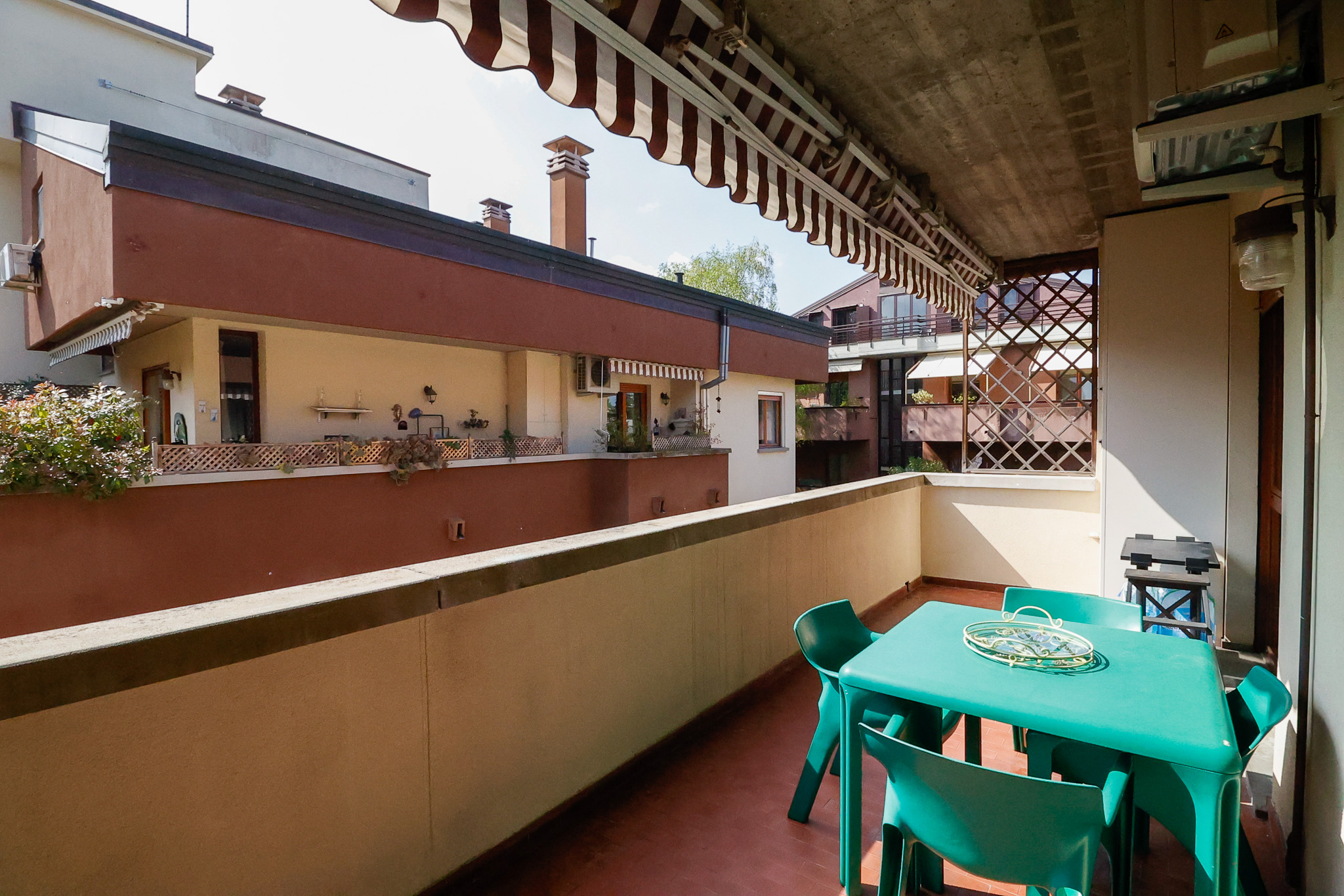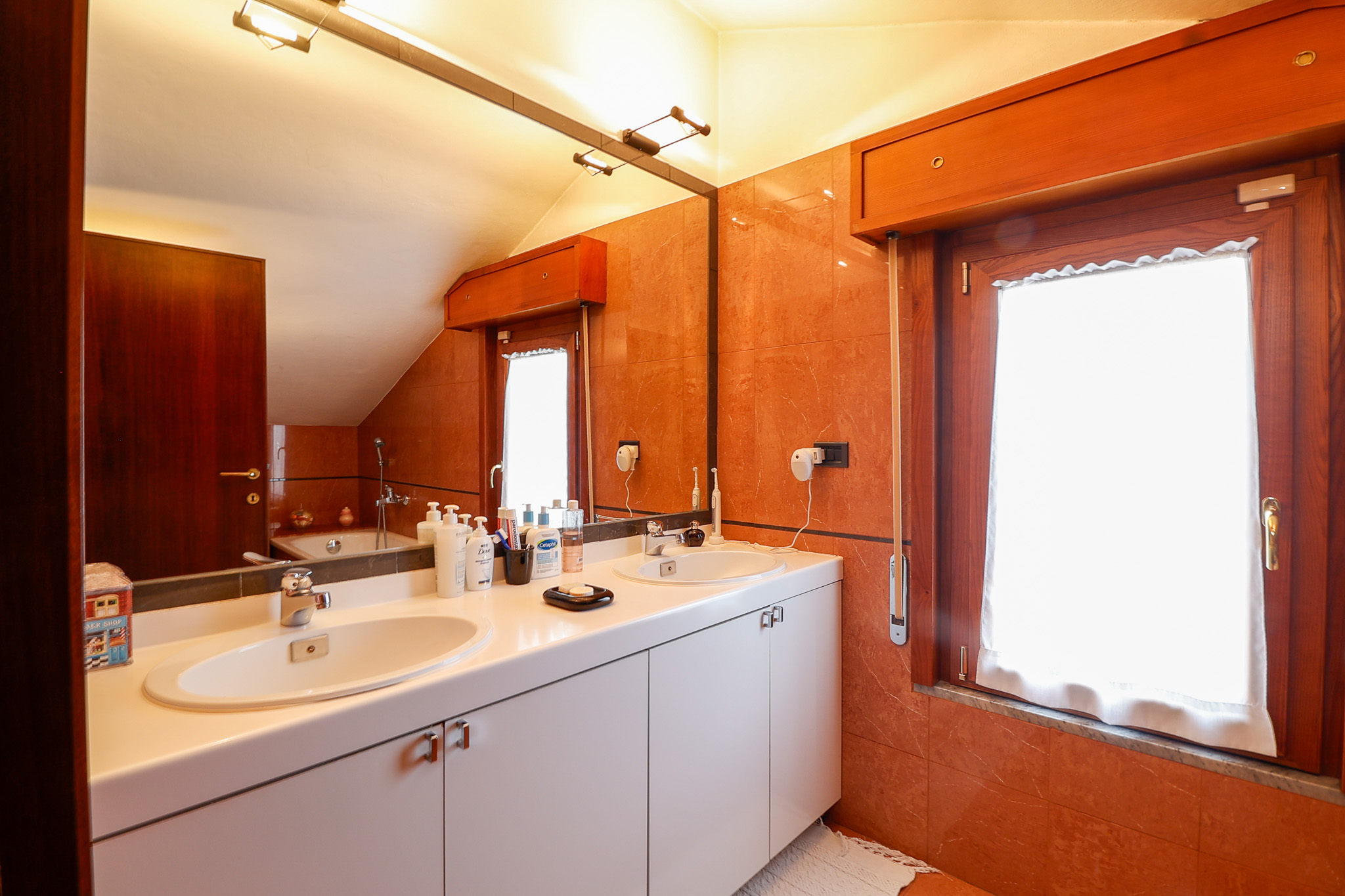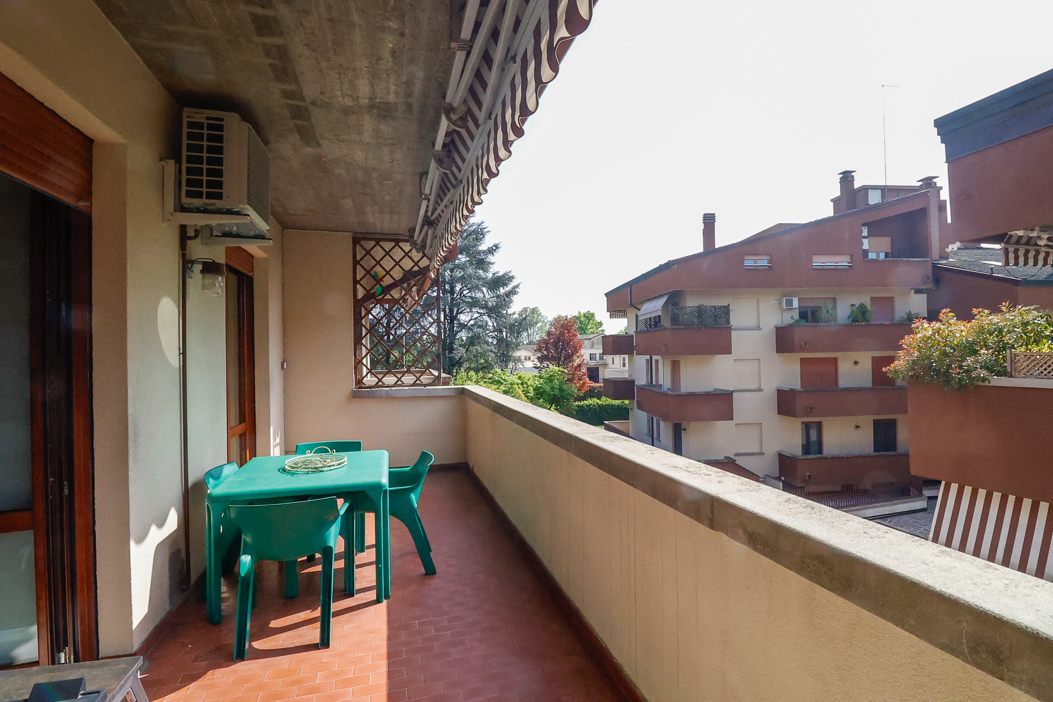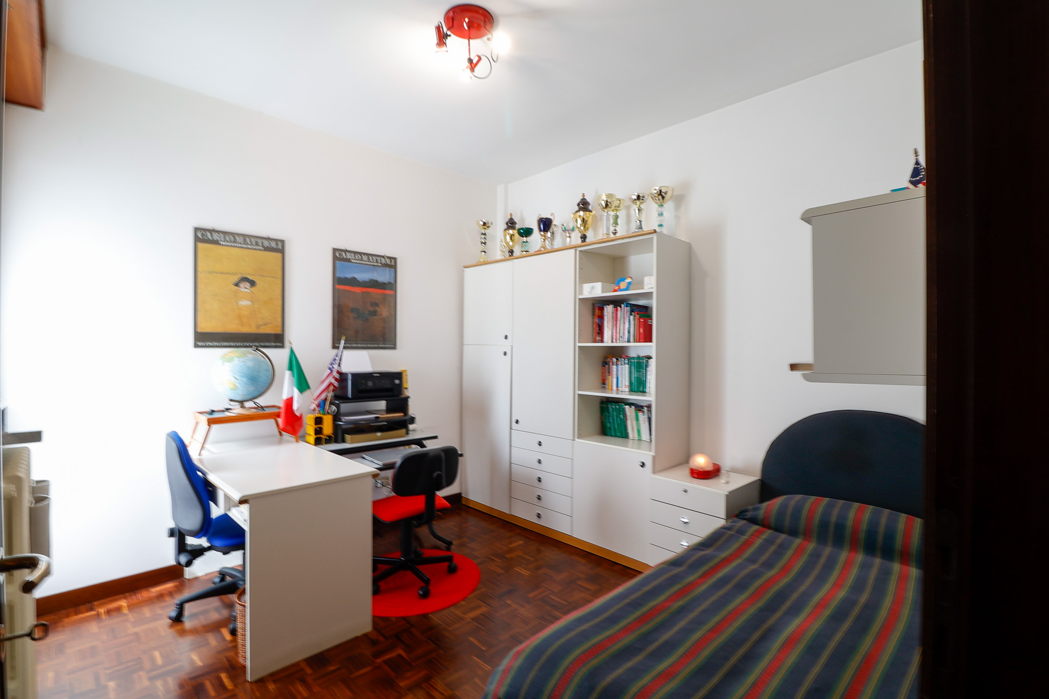Salendo al livello superiore si sviluppa la zona notte: la camera matrimoniale dispone di bagno en suite e cabina armadio, mentre le due camere singole sono ben proporzionate e servite da un ulteriore bagno. Tutte le stanze hanno accesso a caratteristici balconi a tasca, che aggiungono ulteriore luce e respiro agli ambienti. Un valore aggiunto importante è il secondo ingresso indipendente dal vano condominiale, che rende i due piani eventualmente separabili, offrendo così una grande flessibilità d’uso.