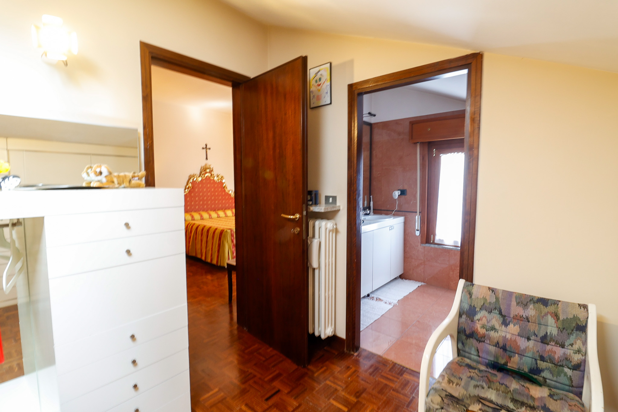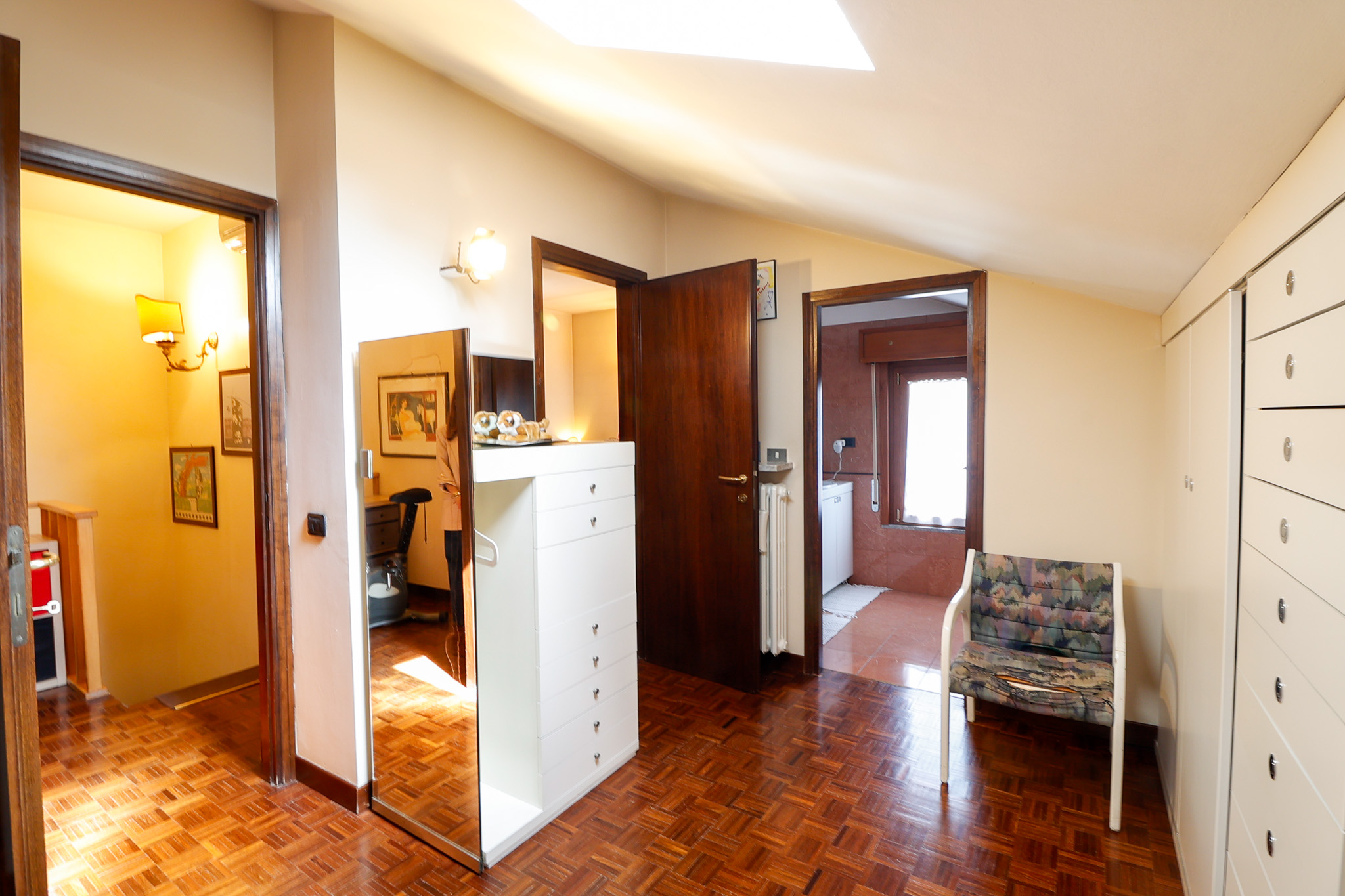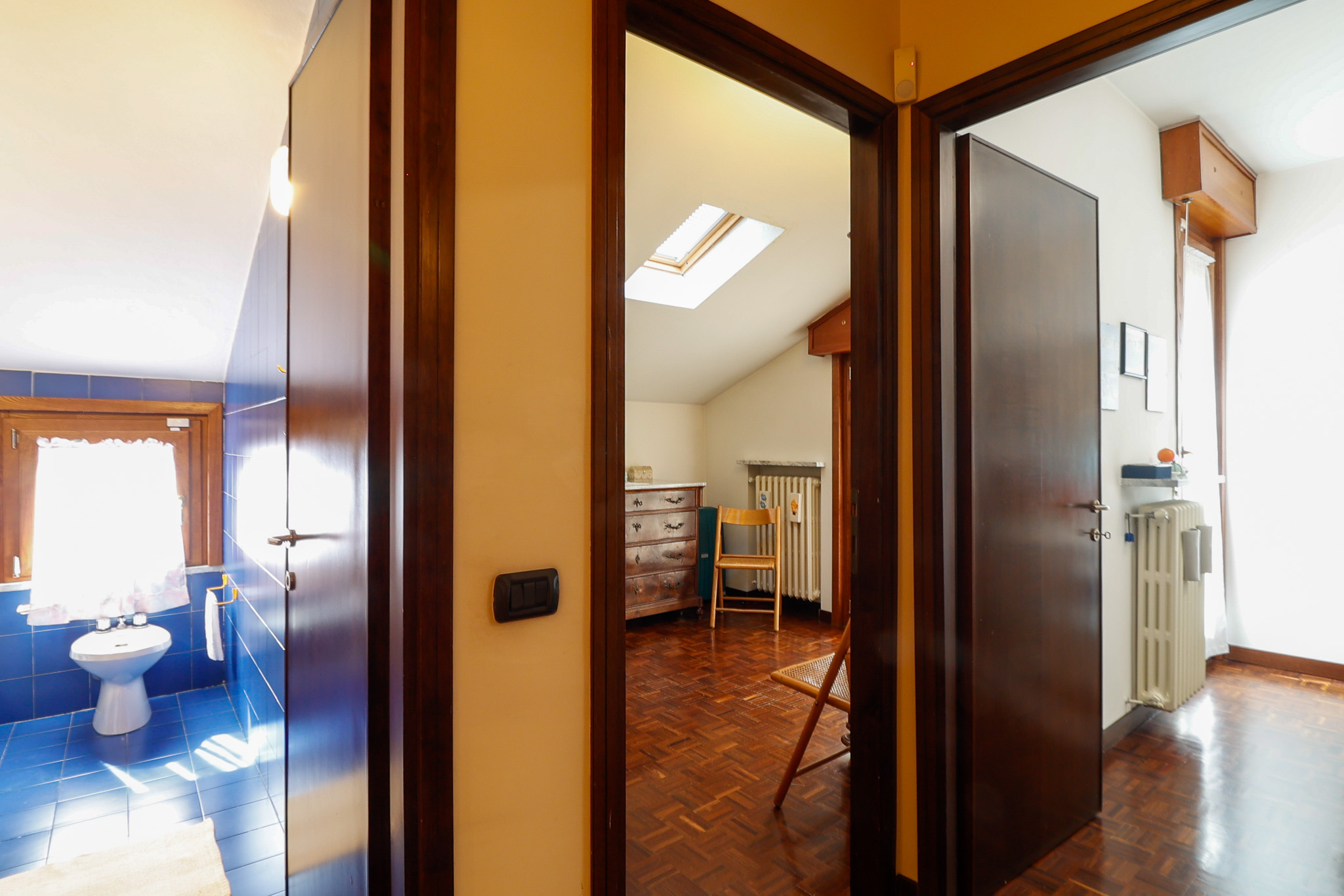 La pavimentazione in parquet nella zona giorno conferisce calore ed eleganza, mentre il resto dell’immobile conserva finiture originali degli anni ’80, offrendo così l’opportunità di essere reinterpretato e personalizzato secondo gusti e esigenze contemporanee, valorizzandone al meglio il grande potenziale.