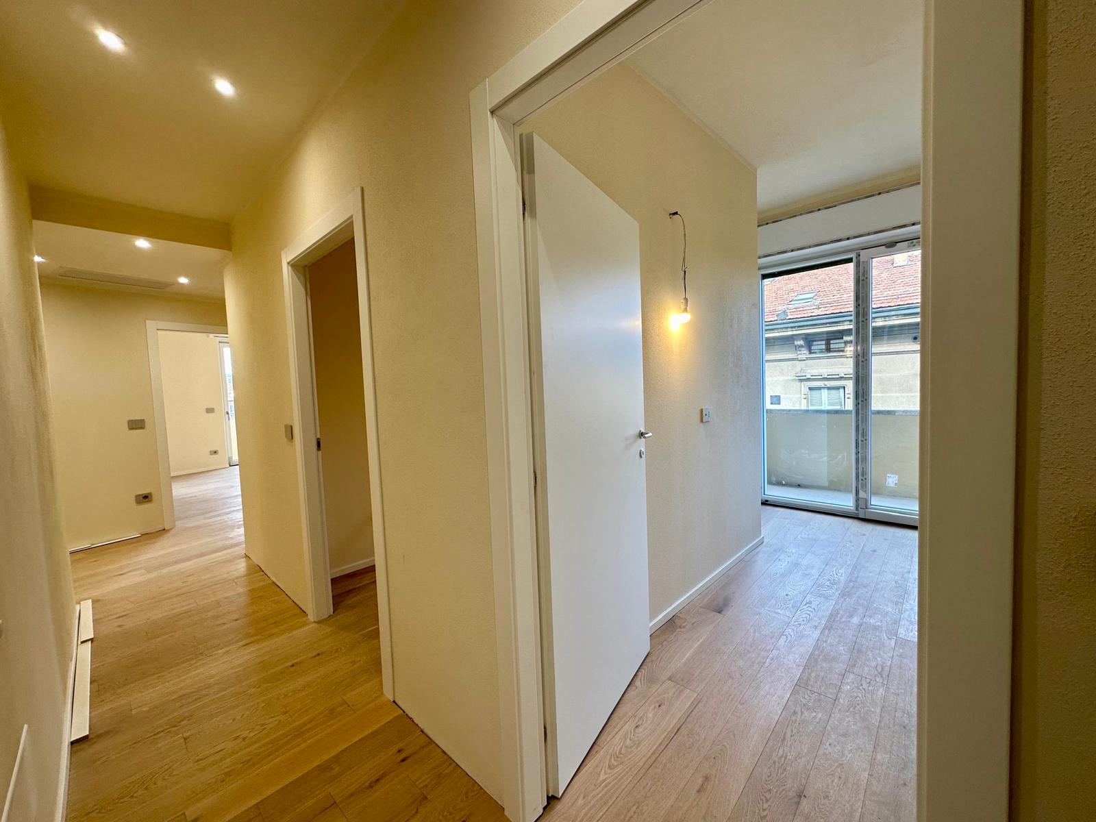 La zona notte comprende una master bedroom con cabina armadio e bagno privato, due camere matrimoniali – una delle quali dotata di ulteriore cabina armadio – uno studio e un secondo bagno. Da camere e studio si accede a un secondo balcone, riservato e tranquillo.