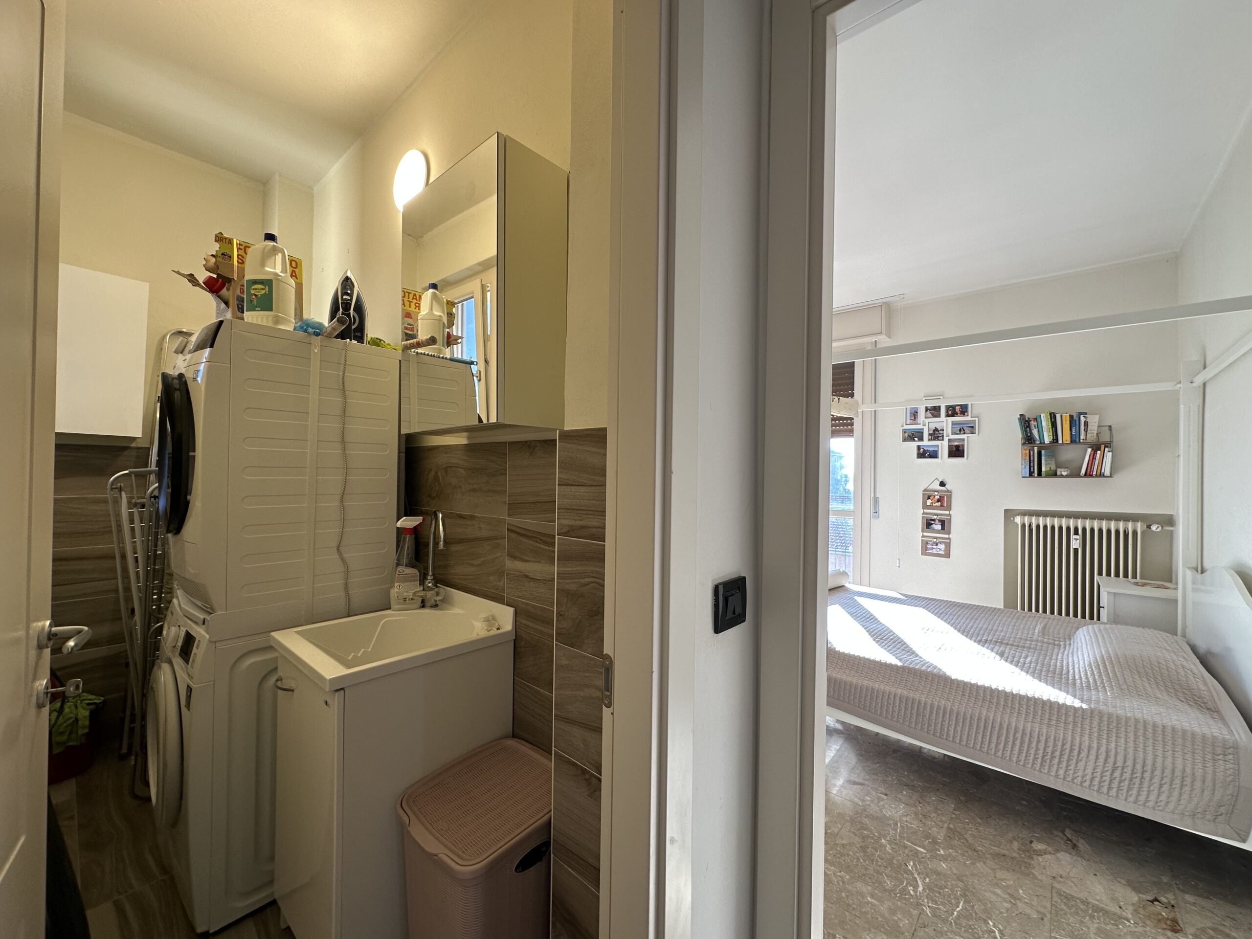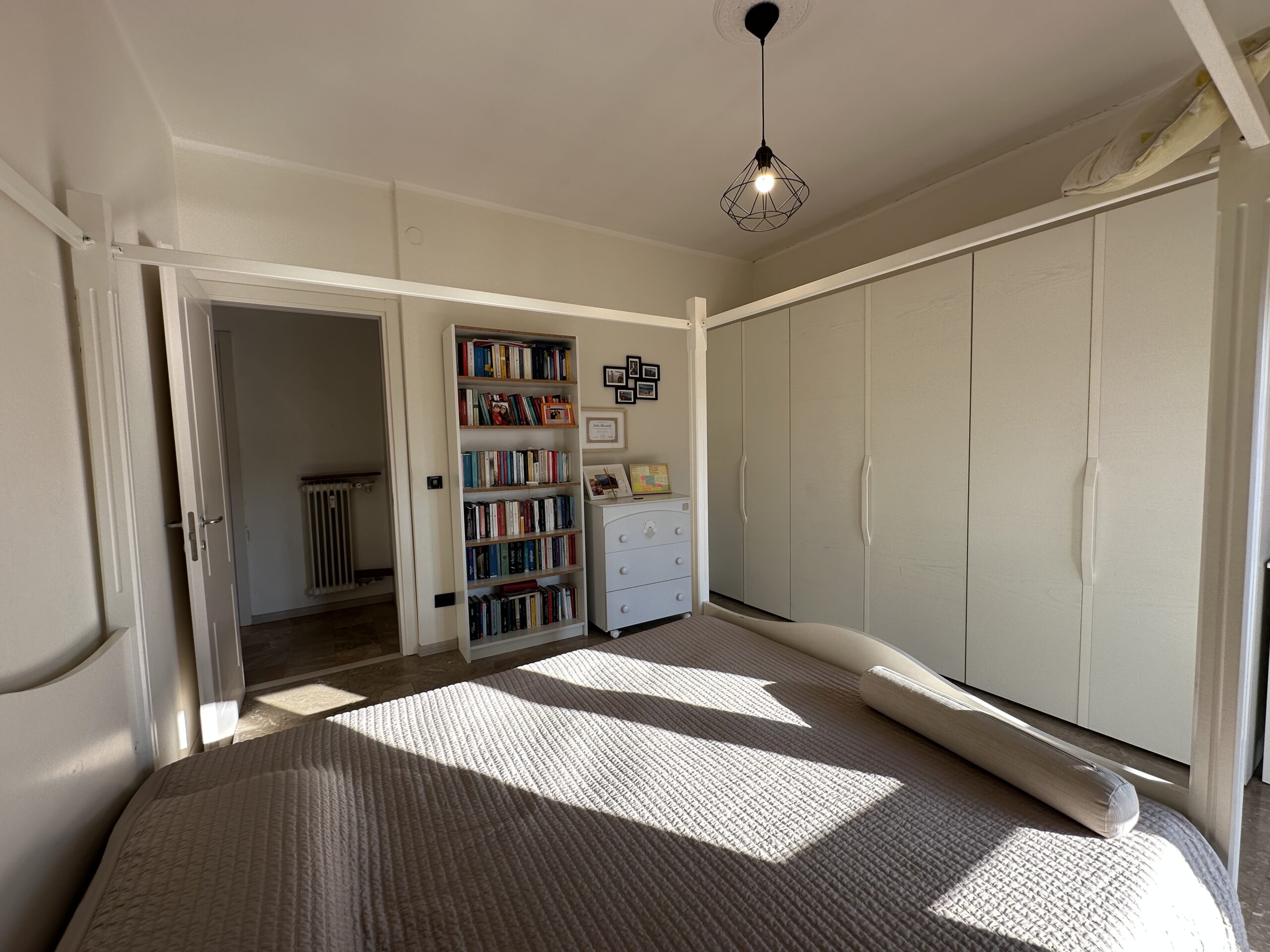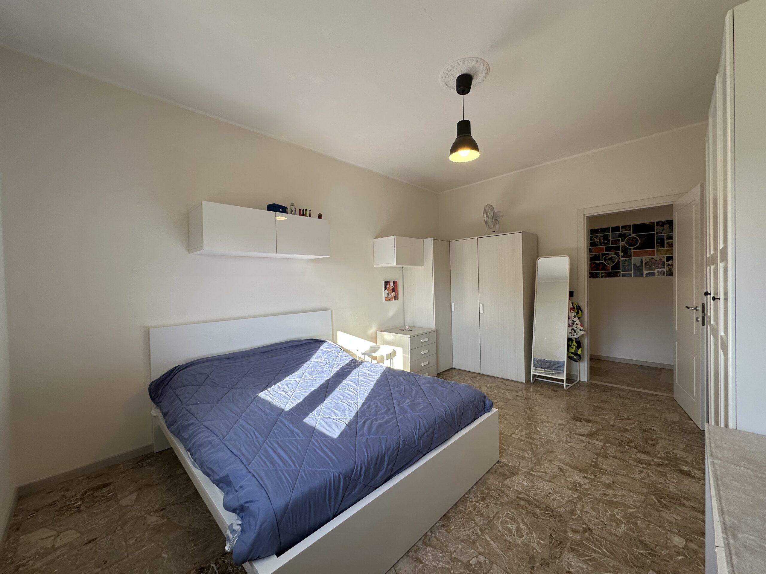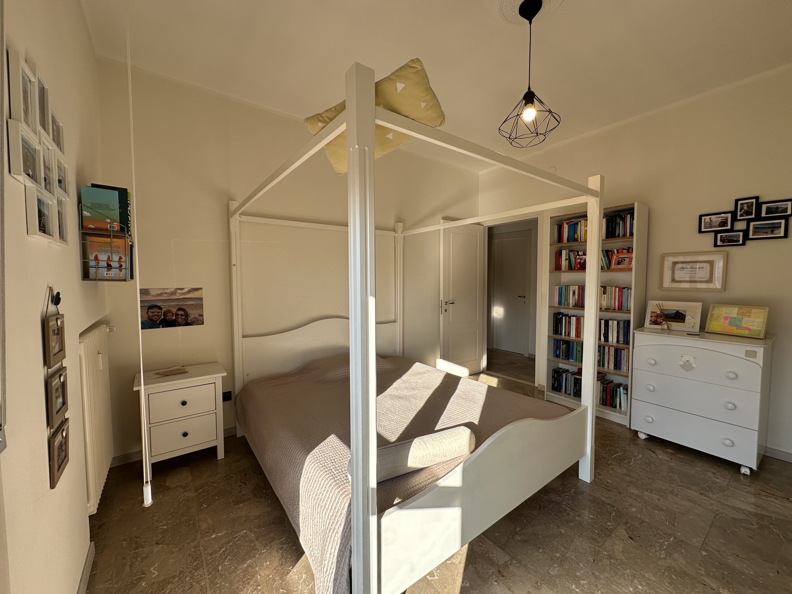 La zona notte è ben separata e offre tre camere matrimoniali dalle metrature generose, una delle quali con balcone, oltre a un bagno principale completamente ristrutturato e a un secondo bagno di servizio attualmente utilizzato come lavanderia.