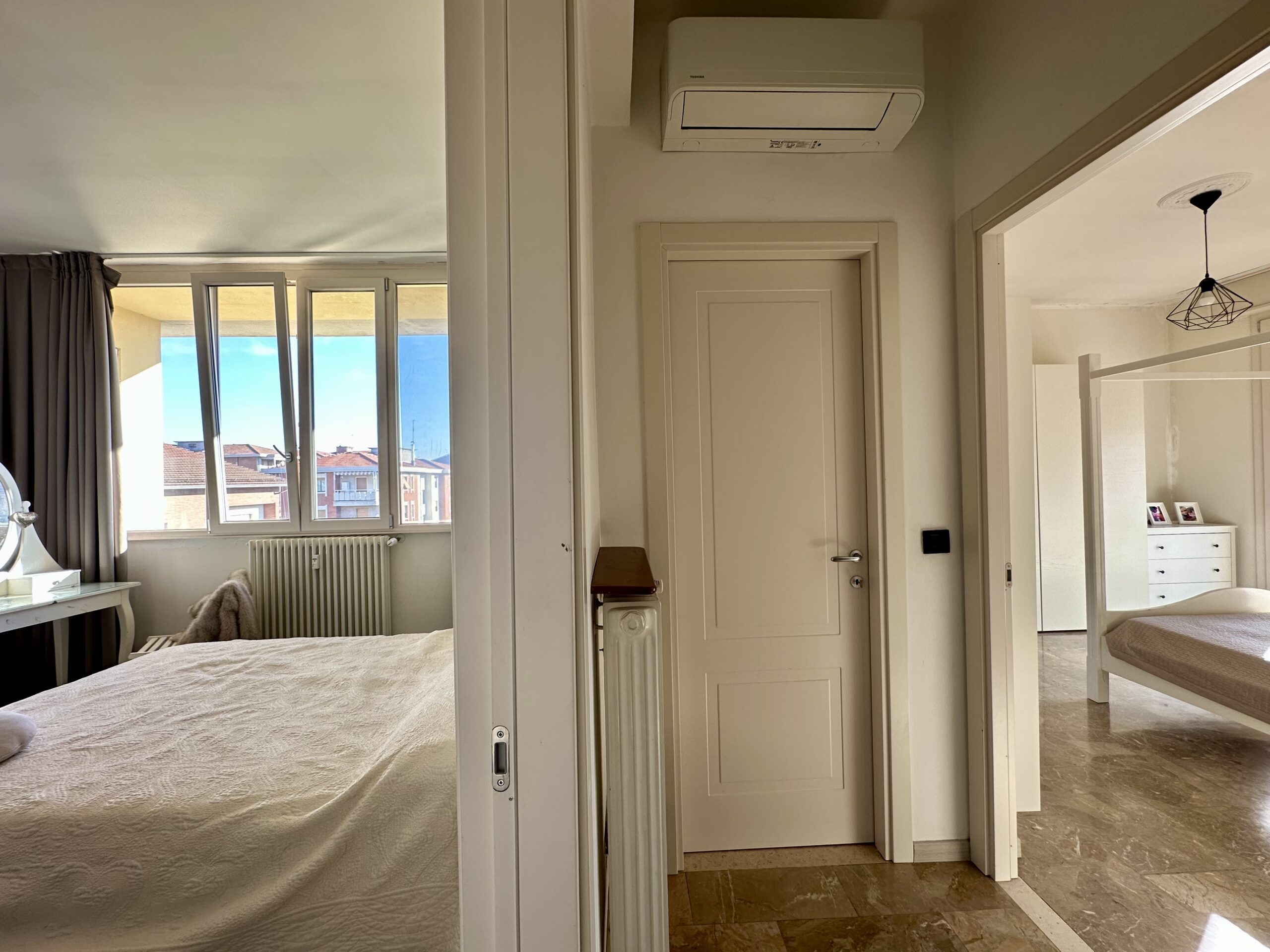 L’appartamento è dotato di aria climatizzata, infissi recentemente rifatti con doppi vetri che garantiscono ottimo isolamento termico e acustico, e riscaldamento centralizzato. La posizione interna rispetto alla strada rende l’abitazione particolarmente tranquilla e silenziosa.