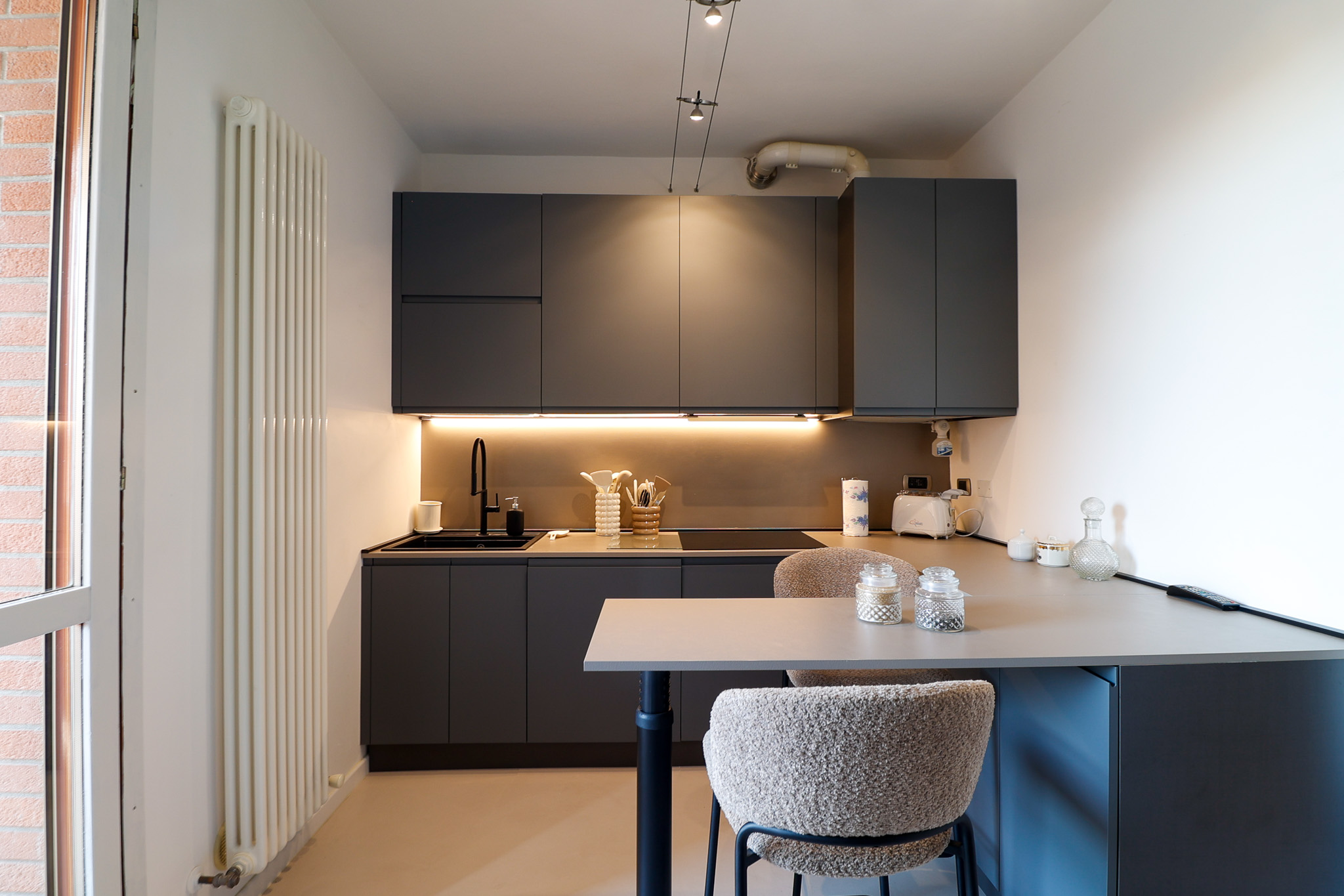 L’appartamento è termoautonomo ed è dotato di pompa di calore per aria climatizzata, garantendo comfort tutto l’anno e una gestione efficiente dei consumi.