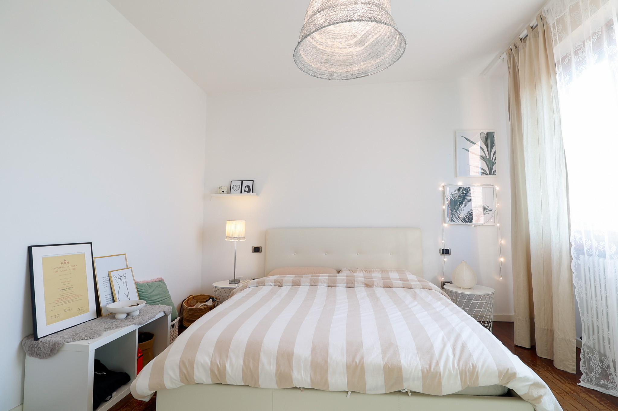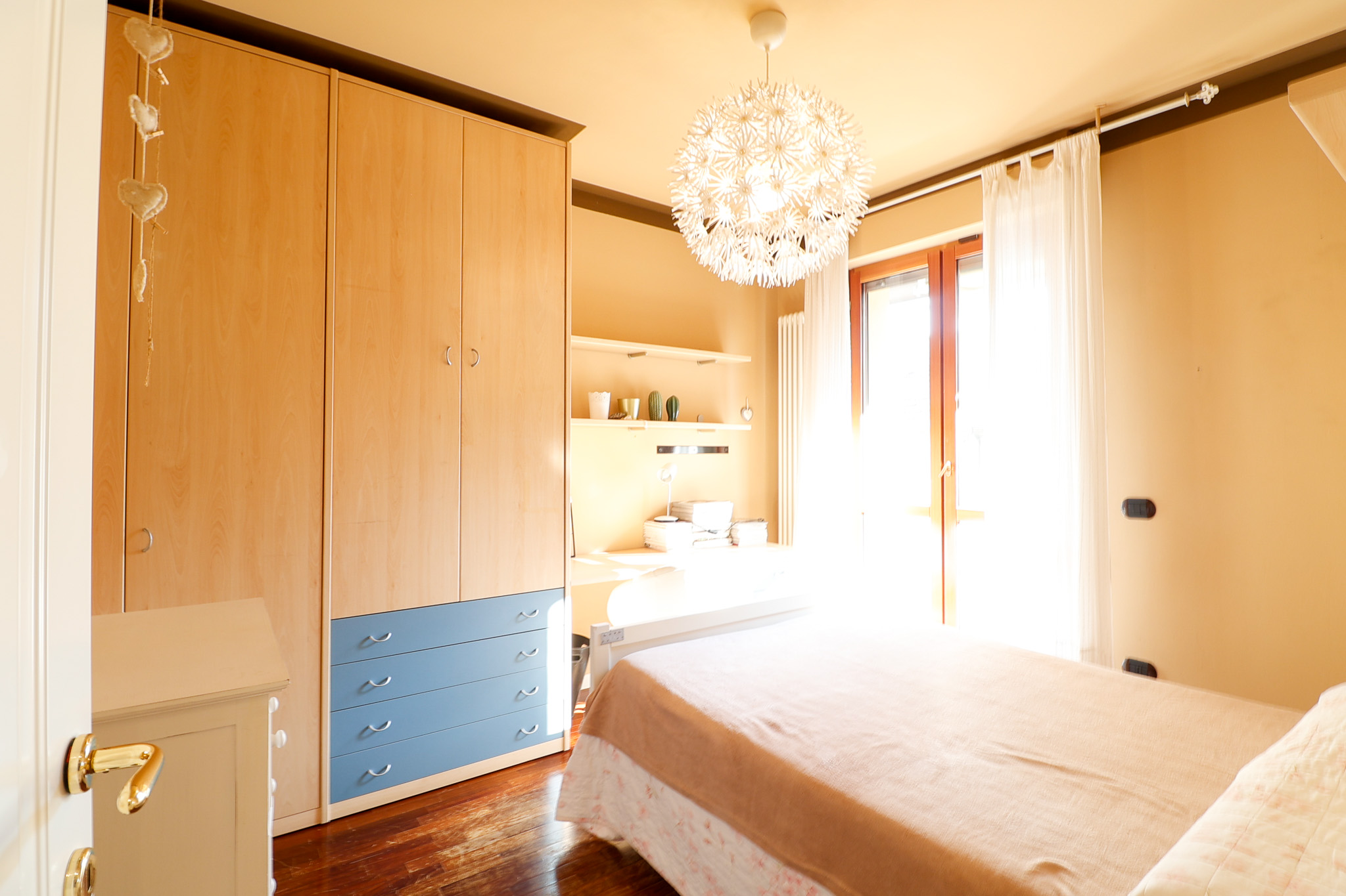 La zona notte offre due camere matrimoniali ben dimensionate, una con accesso al balcone, una camera singola versatile perfetta anche come studio o stanza di appoggio, anch’essa con uscita sullo stesso balcone. Due bagni finestrati completano la zona notte.