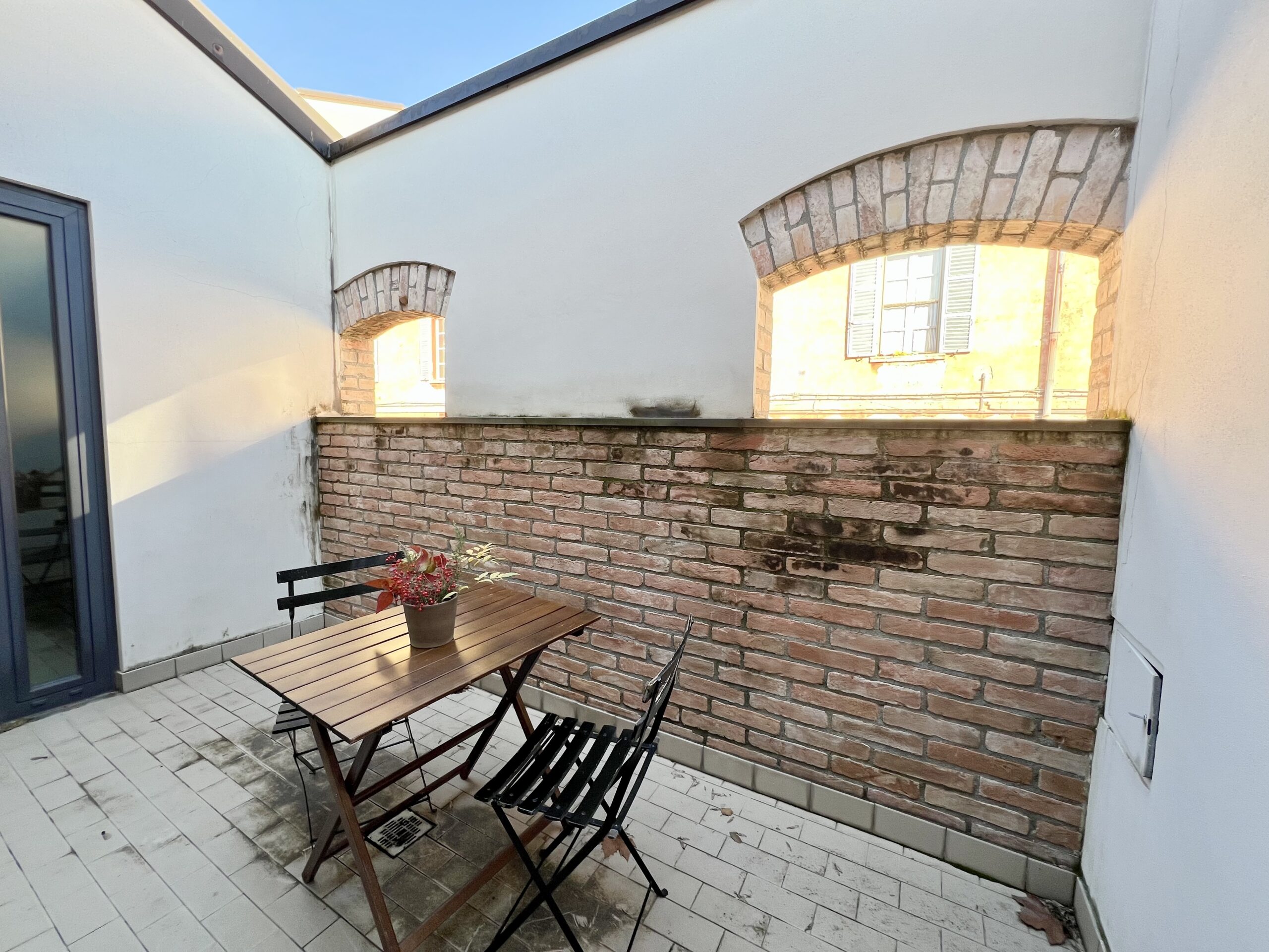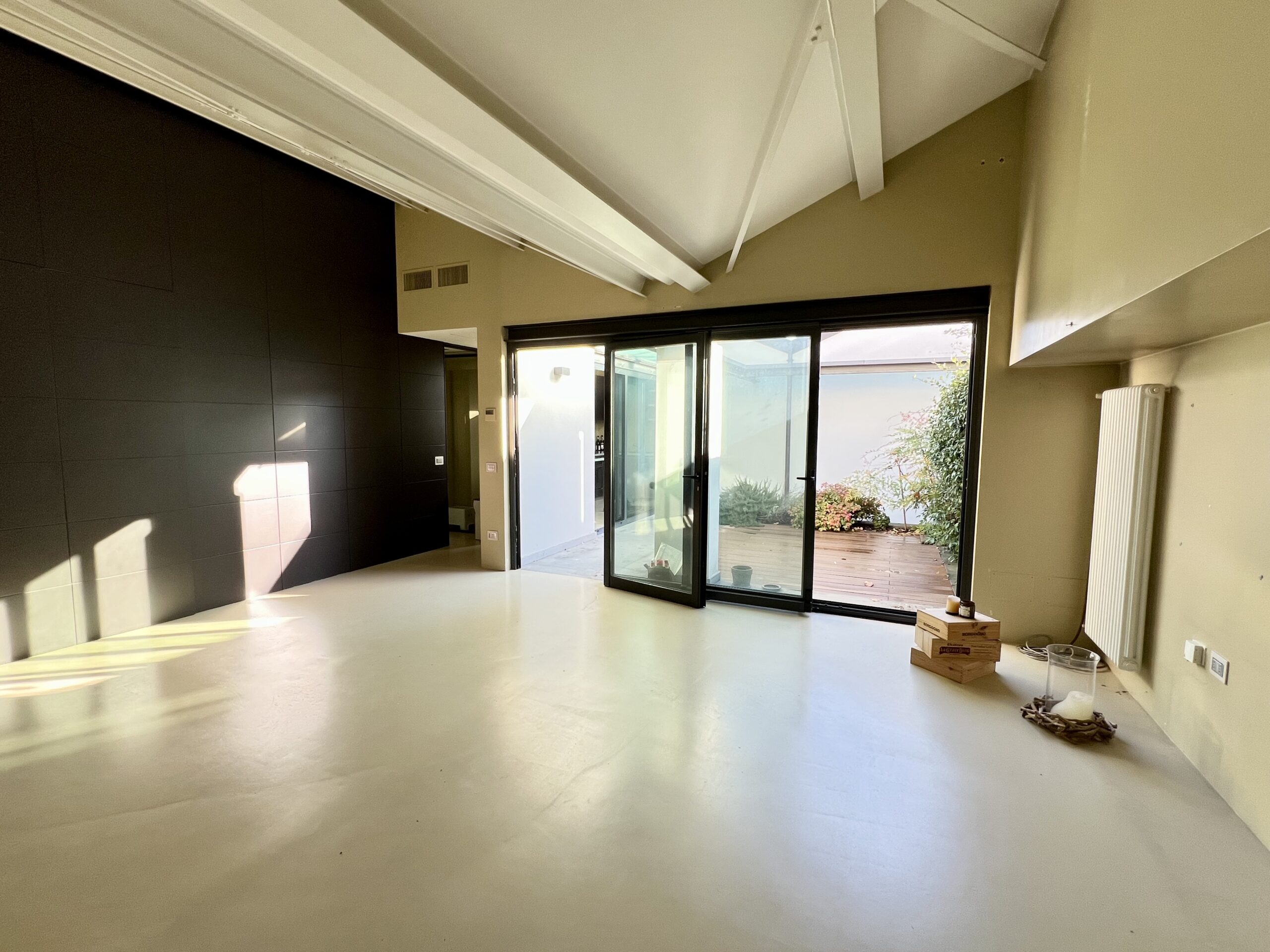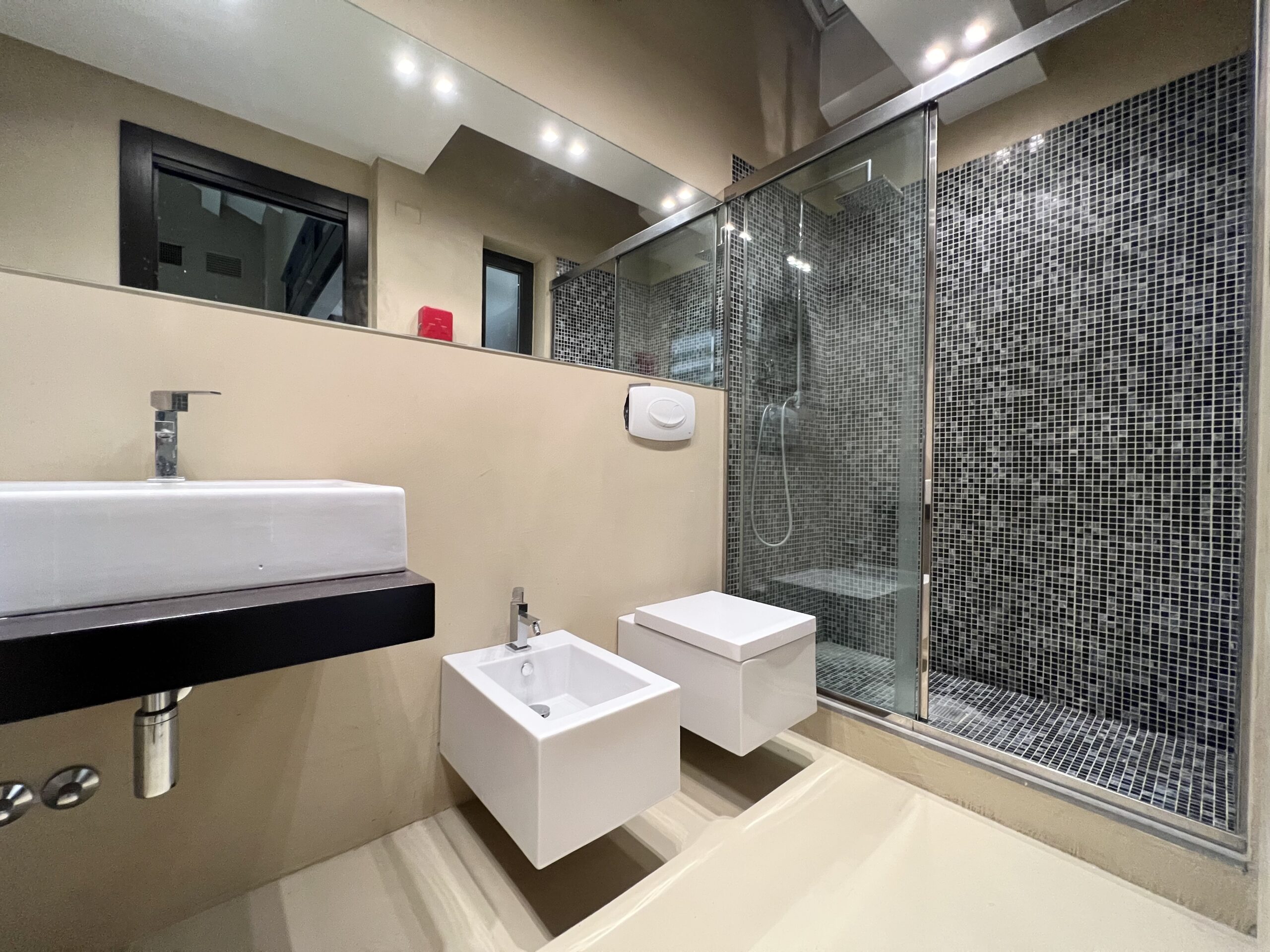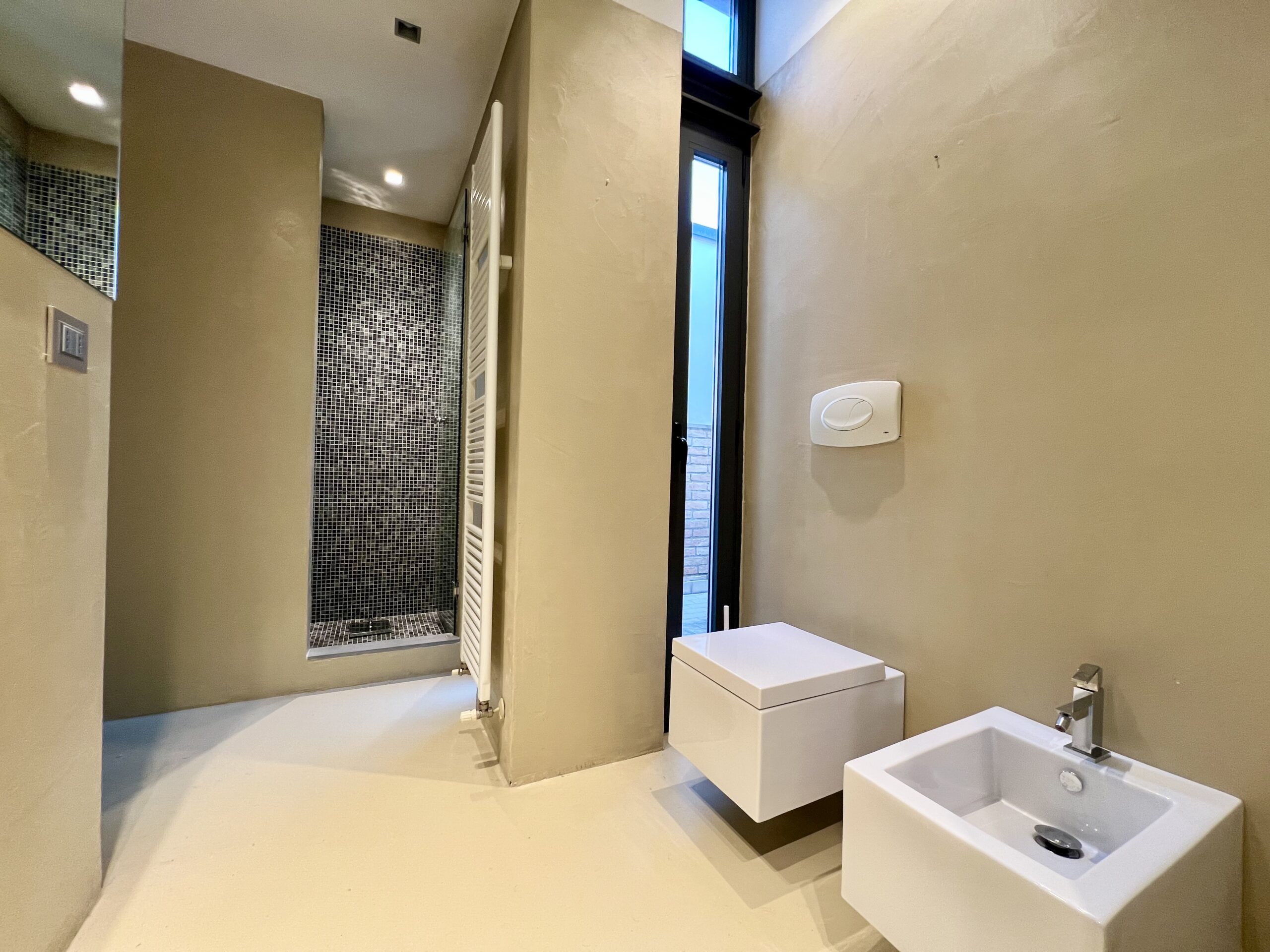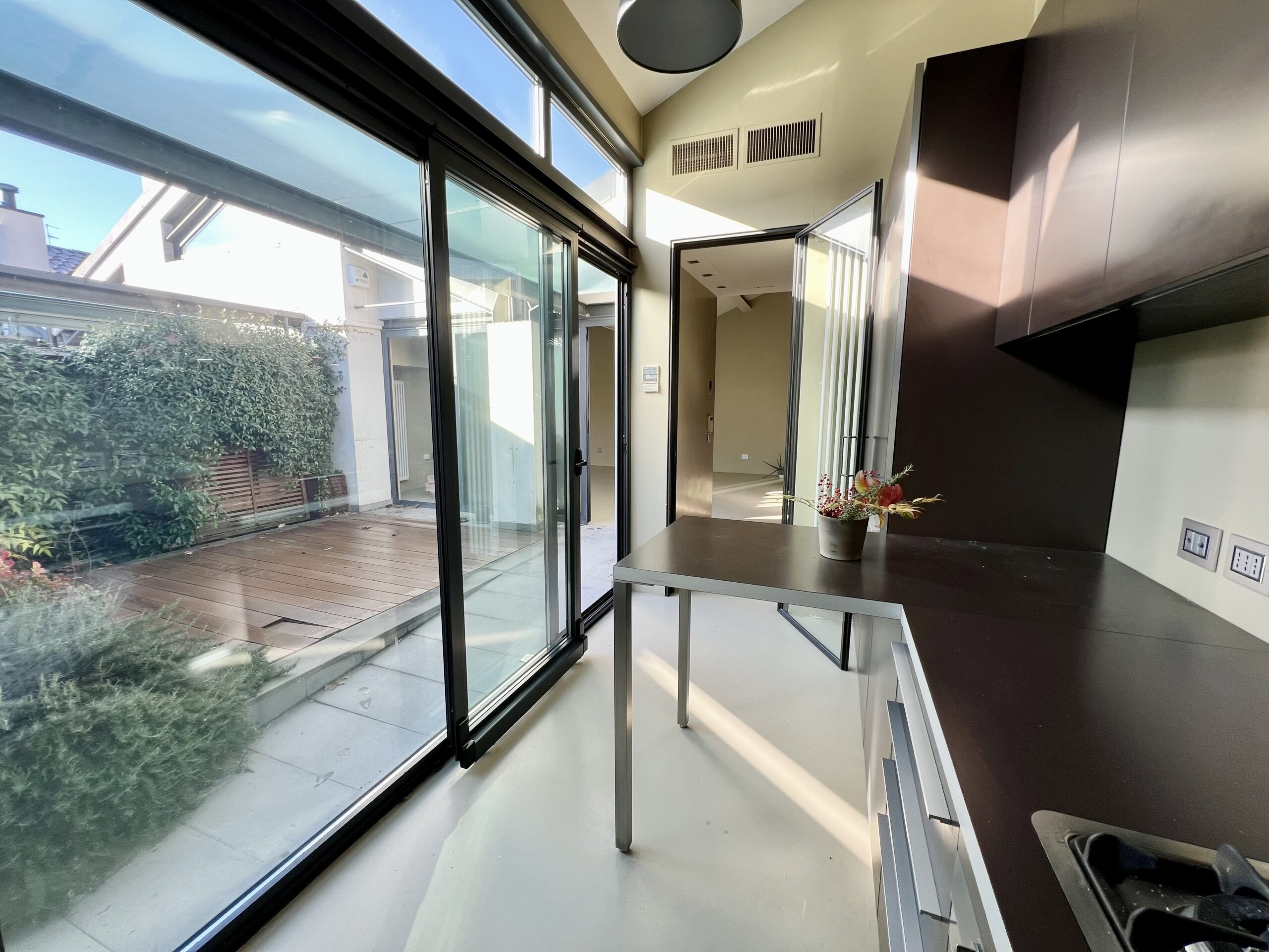 L’abitazione colpisce per la grande luminosità degli spazi, l’elevato livello delle finiture e la quiete dell’ambiente circostante. L’ingresso indipendente conduce direttamente a un ampio patio esterno, perfetto per momenti di relax o per piacevoli occasioni conviviali. Le ampie vetrate si affacciano sulla zona living, generosa e contemporanea, valorizzata da elementi metallici a vista che richiamano l’anima originaria dell’edificio. La cucina, separata e semi-abitabile, coniuga praticità ed estetica.