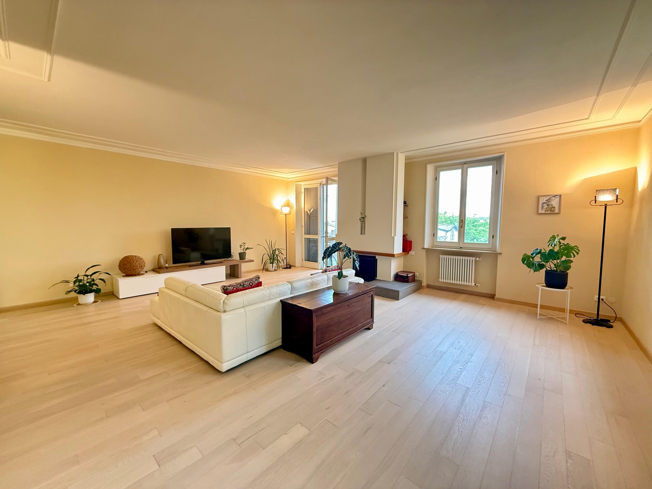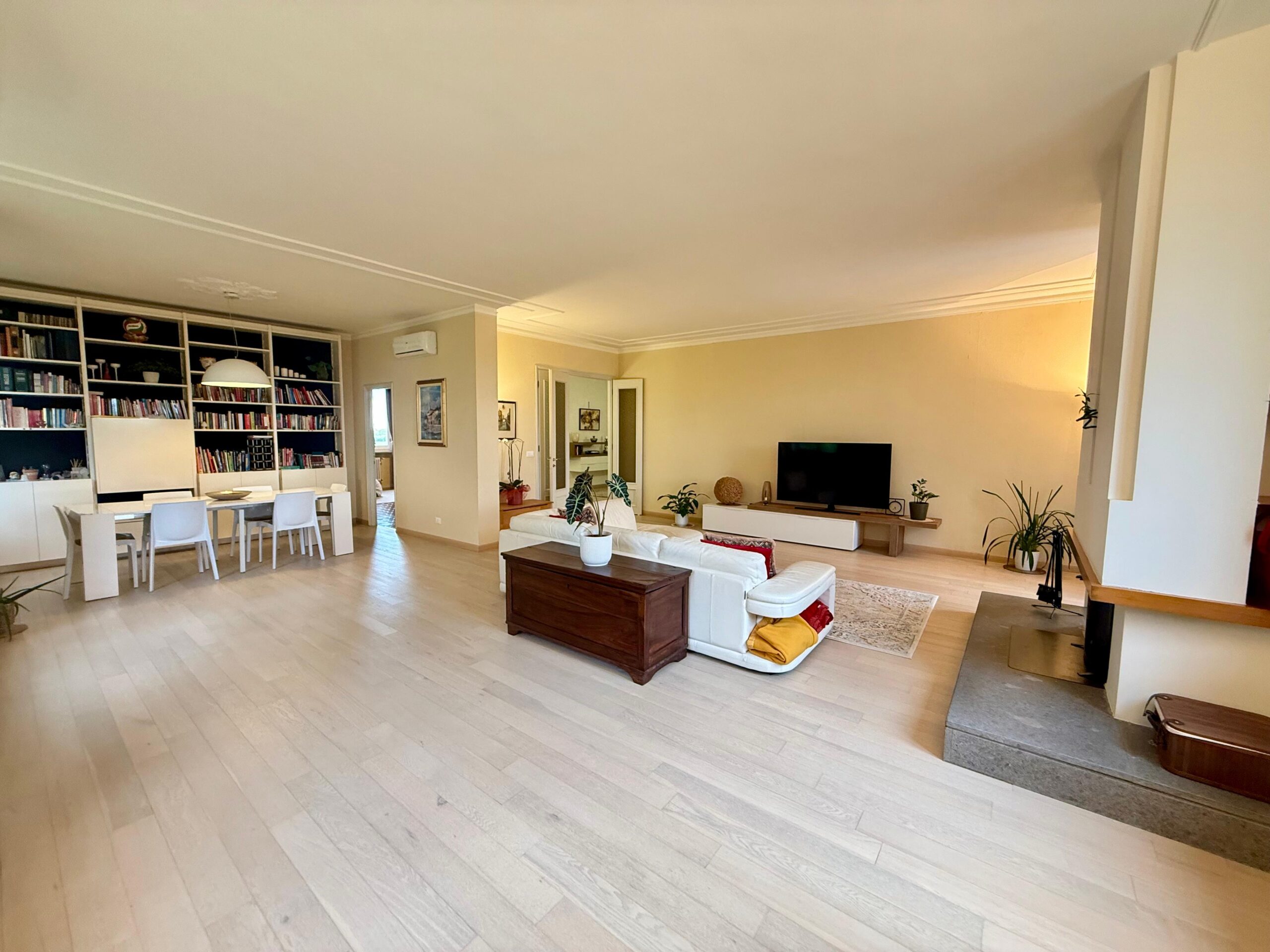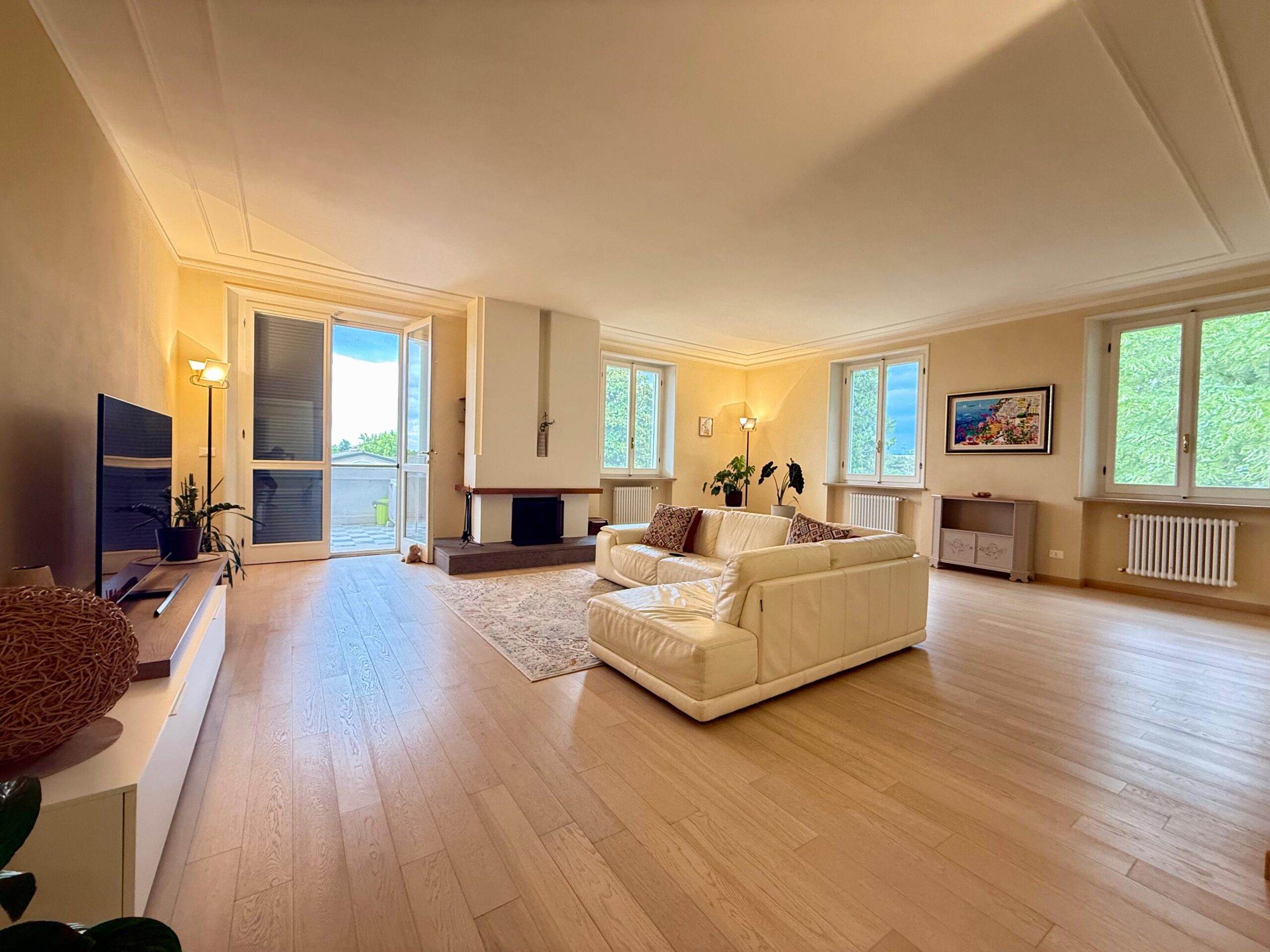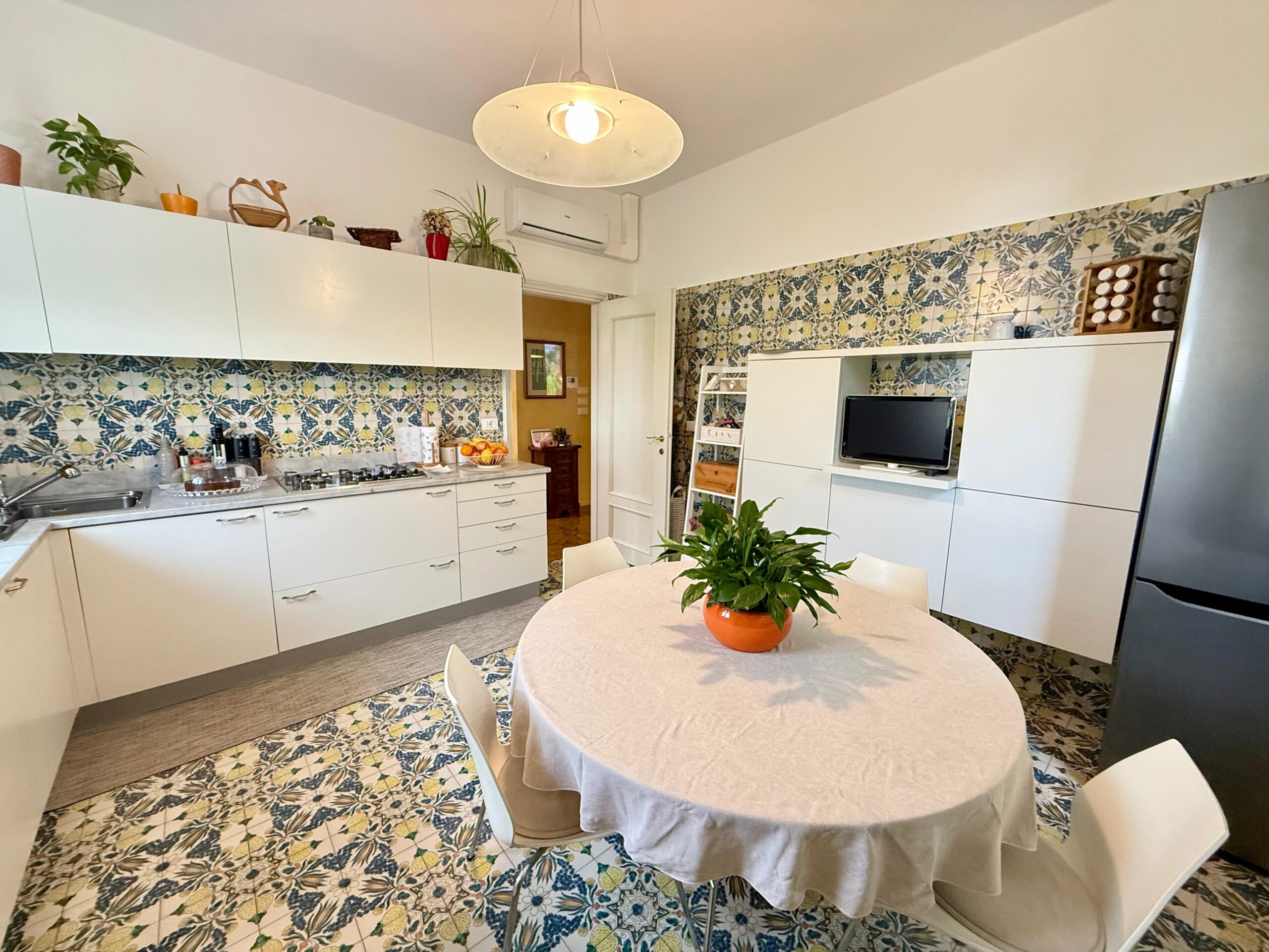 Il grande salone, estremamente luminoso, affaccia sulla terrazza, mentre la cucina abitabile è separata e ben organizzata. Un tinello adiacente offre uno spazio versatile, ideale come seconda zona pranzo o come sala giochi.