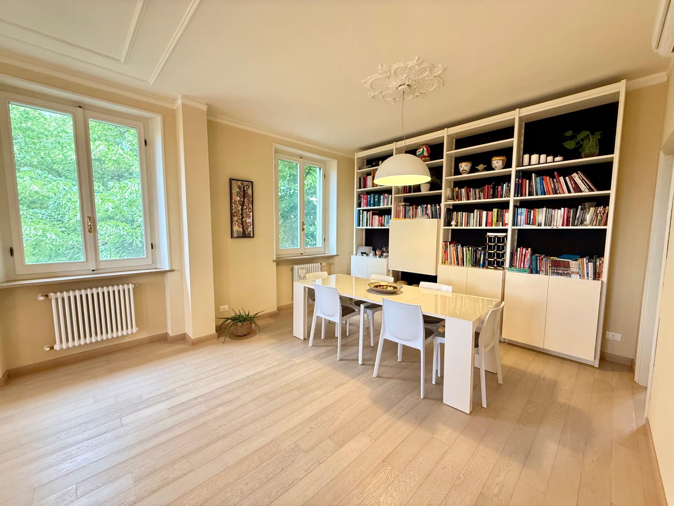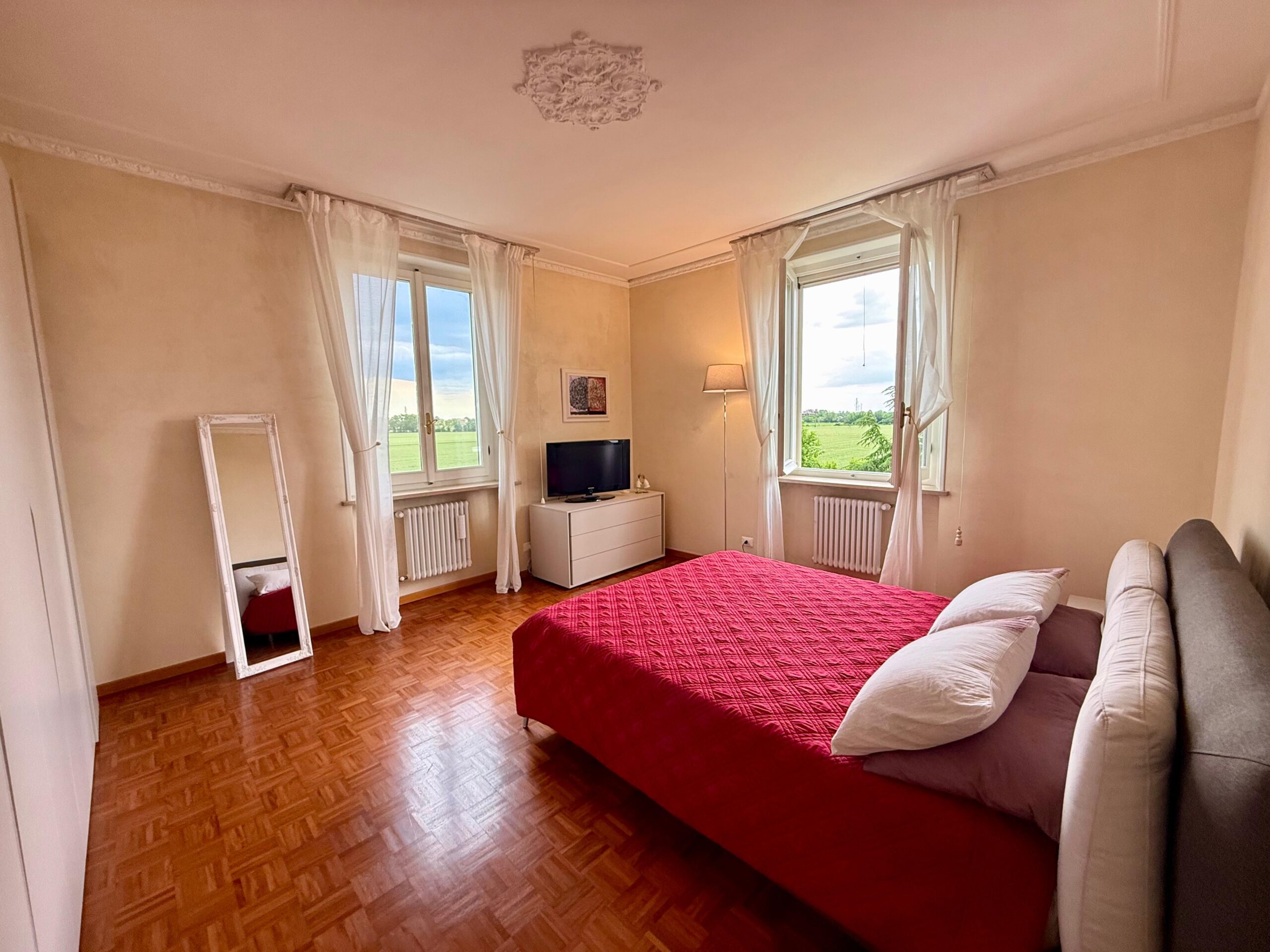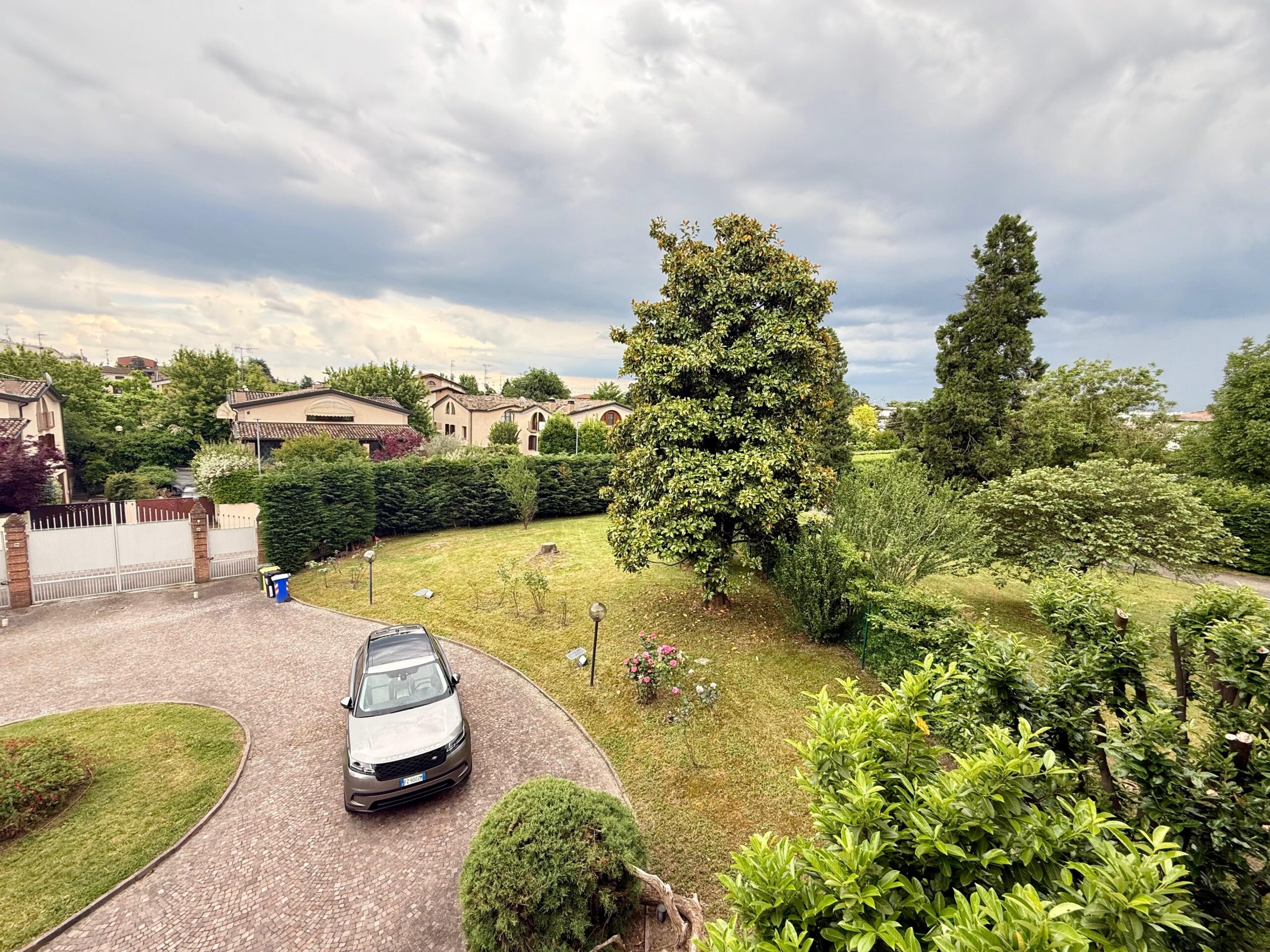 In via Aurelio Nicolodi, a breve distanza dalla tangenziale di Parma, proponiamo in locazione una porzione di villa situata in un contesto tranquillo e immerso nel verde. L’abitazione si trova al primo piano di un’elegante villa di inizio secolo e ci accoglie con un ampio ingresso funzionale.