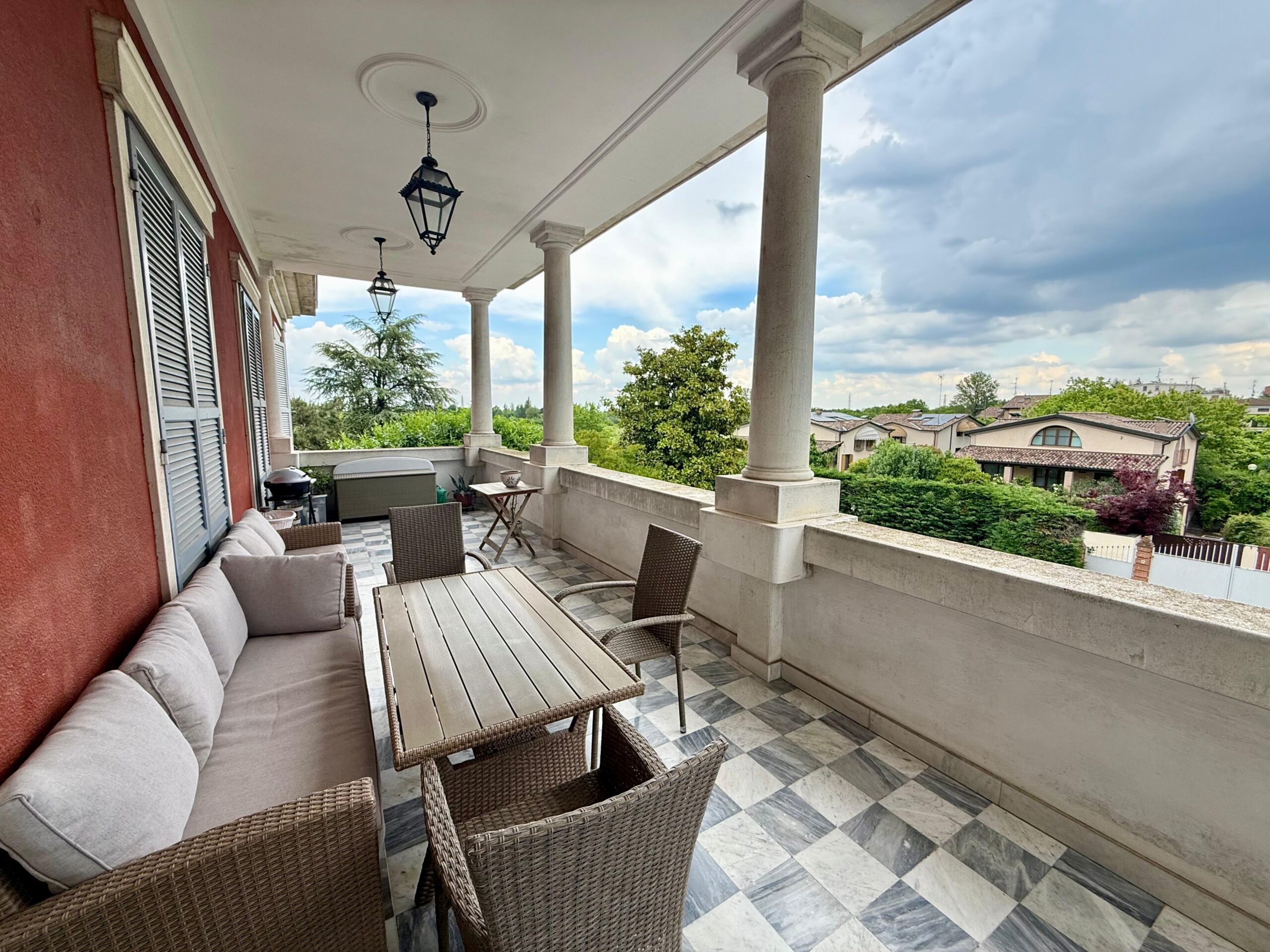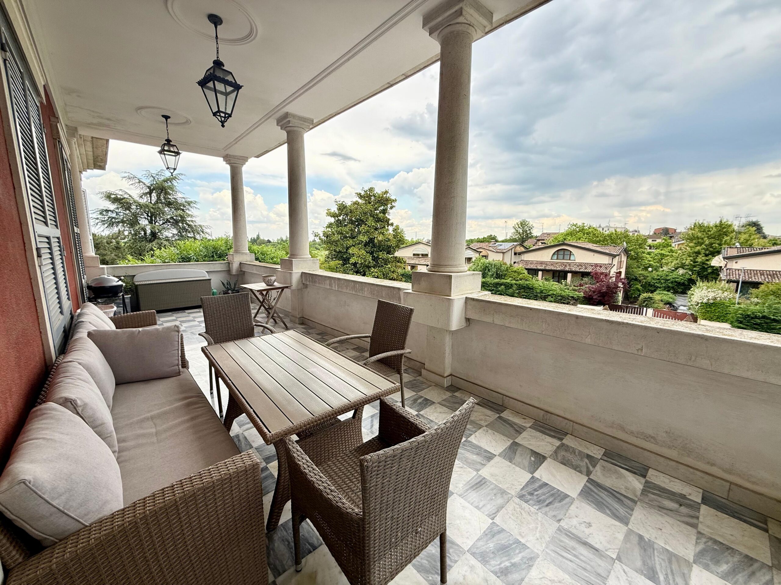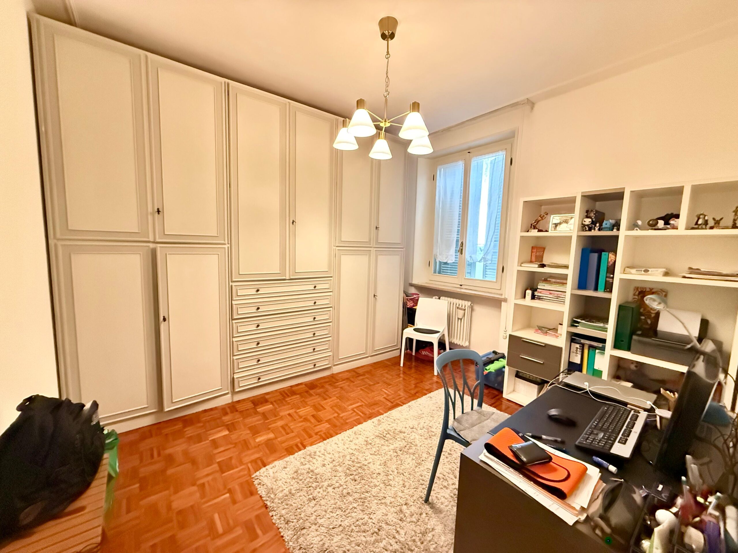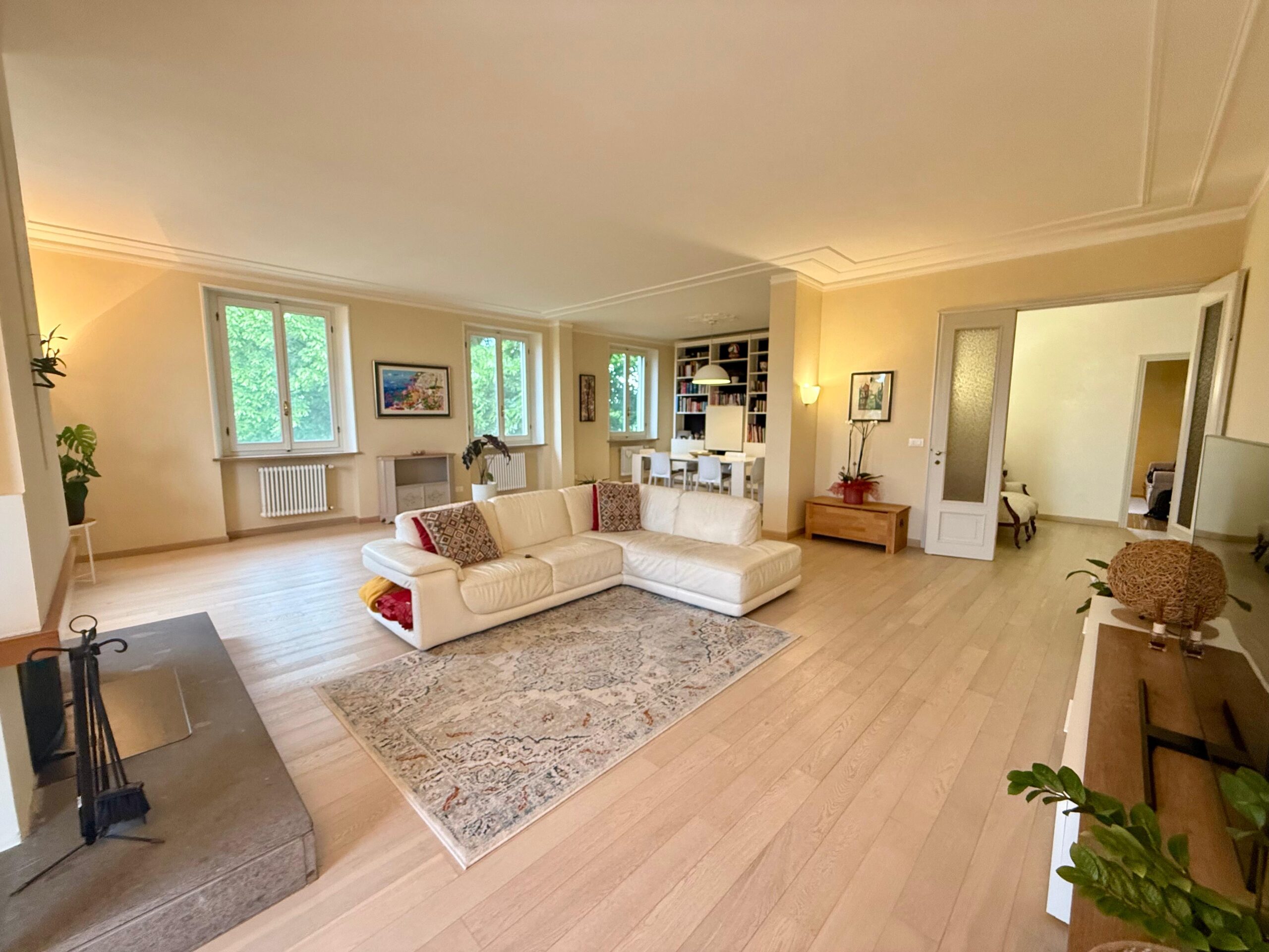 In via Aurelio Nicolodi, a breve distanza dalla tangenziale di Parma, proponiamo in locazione una porzione di villa situata in un contesto tranquillo e immerso nel verde. L’abitazione si trova al primo piano di un’elegante villa di inizio secolo e ci accoglie con un ampio ingresso funzionale.